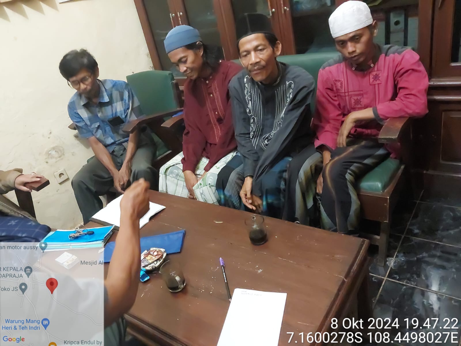 Menjelang maghrib, keempat orang tersebut dibawa ke balai Desa Andapraja. Setelah diinterogasi lebih lanjut, mereka mengaku berasal dari Kelurahan Ciporong, Kabupaten Kuningan. Saat digeledah, warga menemukan beberapa proposal permohonan bantuan dari lembaga yang beralamat di Puri Asri 3, Jalan Tumaritis No. 127/128 RT 045, Ciporong, Kuningan. Selain itu, ditemukan pula berbagai proposal lain yang dicurigai tidak sah, termasuk proposal pawai obor tanpa izin pemerintah setempat serta proposal dengan tahun yang tidak sesuai, seperti tahun 2018 dan 2022.