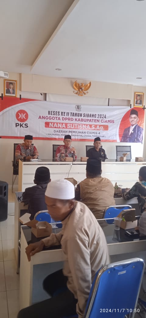 Ciamis – Pada Kamis, 7 November 2024, Anggota DPRD Kabupaten Ciamis, Nanang Sutisna, S.Ag., dari Partai Keadilan Sejahtera (PKS) menggelar reses kedua tahun sidang 2024. Acara ini diselenggarakan di aula kantor Desa Sirnajaya, Kecamatan Rajadesa, dan dihadiri oleh tokoh agama, pemuda, serta para simpatisan dari berbagai desa di Dapil Empat.