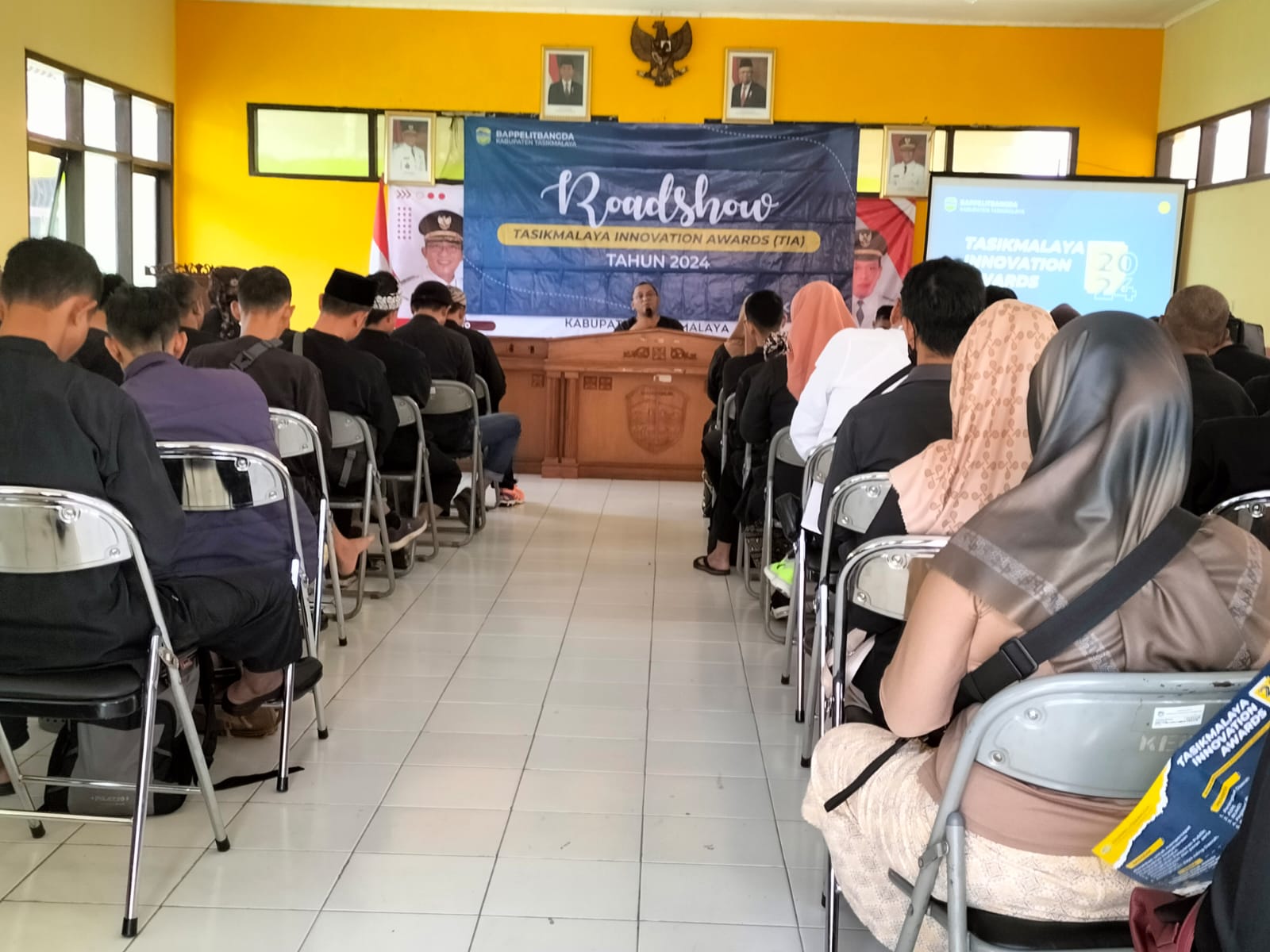 Tasikmalaya – Bappelitbangda Kabupaten Tasikmalaya menggelar roadshow Tasikmalaya Inovation Awards (TIA) tahun 2024 mengenai pelayanan publik untuk mempercepat terwujudnya kesejahteraan masyarakat, di Aula Kecamatan Manonjaya Kabupaten Tasikmalaya Jawa Barat, Selasa (19/3).