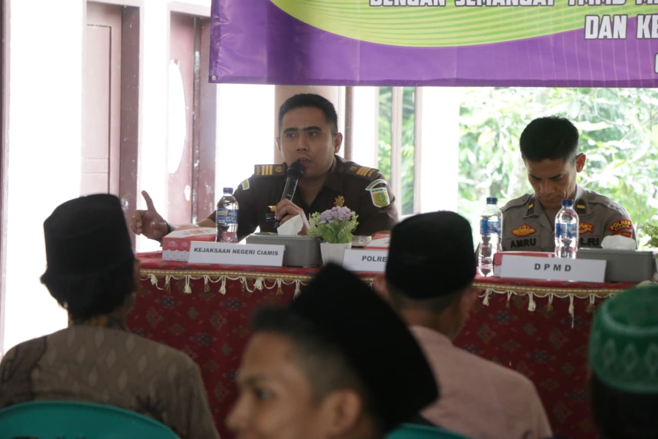 Acara ini menghadirkan narasumber dari Polres Ciamis dan Kejaksaan Negeri Ciamis, serta diikuti oleh puluhan warga dari berbagai kalangan, mulai dari tokoh masyarakat, perangkat desa, hingga para pemuda.