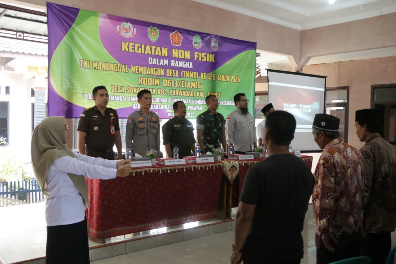 CIAMIS, ||  Dalam rangka mendukung keberhasilan pelaksanaan TNI Manunggal Membangun Desa (TMMD) ke-126 Tahun 2025, Satuan Tugas (Satgas) TMMD Kodim 0613/Ciamis terus menunjukkan komitmennya, tidak hanya melalui pembangunan fisik, tetapi juga pembinaan mental dan peningkatan wawasan masyarakat lewat kegiatan nonfisik.