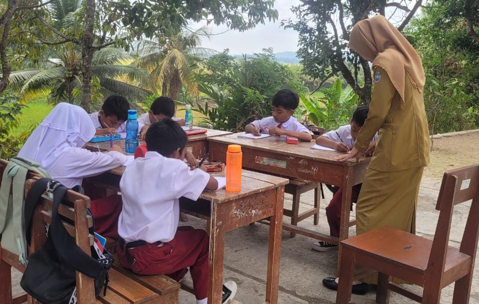 Siswa SDN 5 Wangunjaya Terpaksa Belajar di Selasar Akibat Kondisi Bangunan yang Memprihatinkan