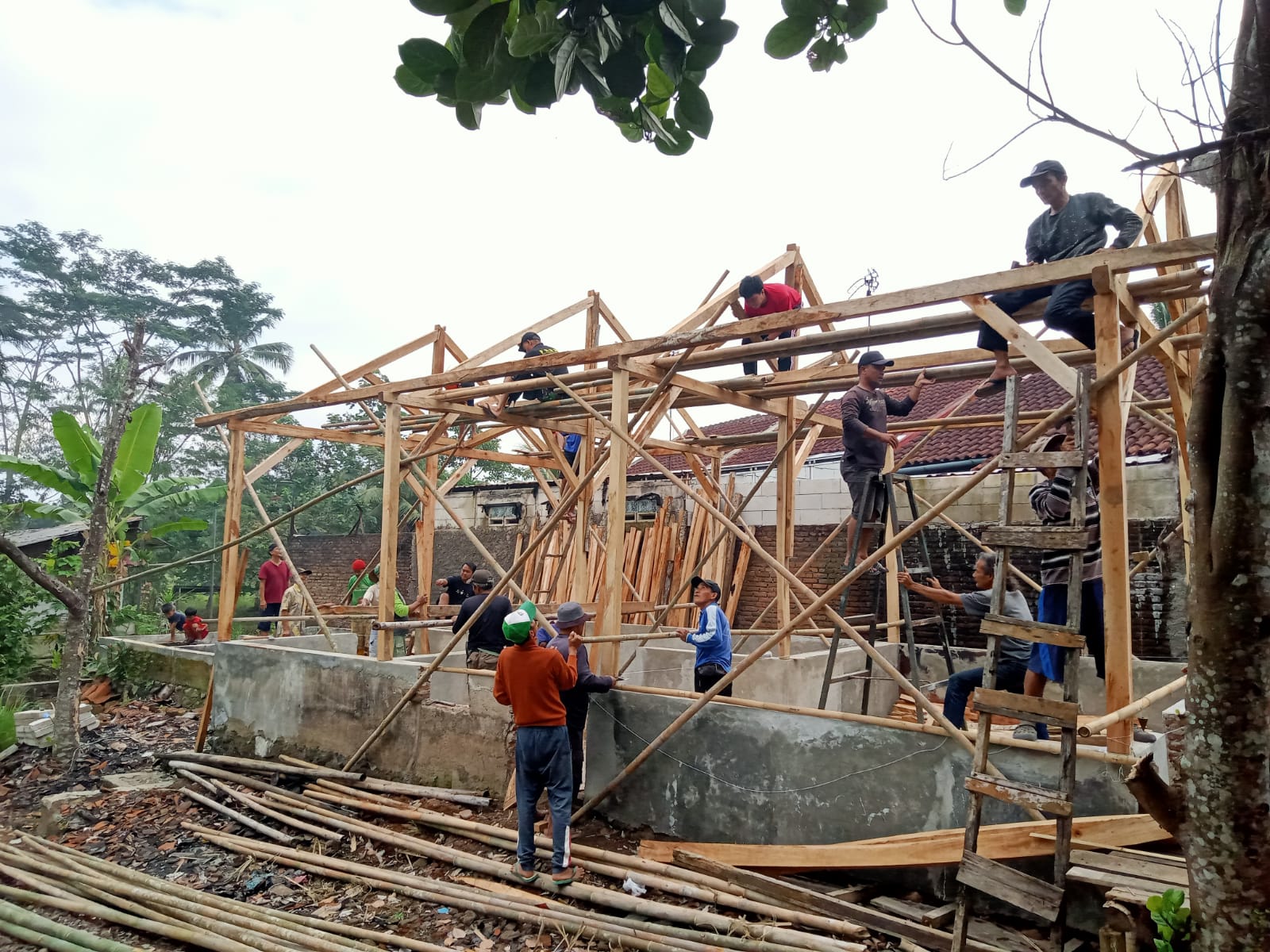 Warga Linggasari Ciamis Gotong Royong Bangun Rumah Korban Kebakaran